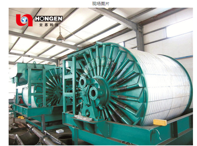 新式自動(dòng)卸料尾礦回收機用途及特點(diǎn):宏恩科技的自動(dòng)卸料尾礦回收機磁盤(pán)采用強弱磁塊搭配磁感應卸礦,該設備通常安裝在選廠(chǎng)尾礦流槽過(guò)程中,尾礦流過(guò)回收機時(shí),由于尾礦中流失的磁性鐵與回收機的磁極充分接觸,將鐵礦吸附在不銹鋼外擋板上,隨擋板旋轉到高點(diǎn)時(shí),磁盤(pán)磁性逐漸消失,鐵礦隨水流自動(dòng)流到溢流槽中,工作效率高,可將尾礦磁性鐵粉品位降低3%-2%以下,從而提高選礦回收率,本設備價(jià)格略高,屬于高效節能型設備。??自卸尾礦回收機的優(yōu)點(diǎn):1.表面場(chǎng)強(外盤(pán)場(chǎng)強)大約在3600-4000GS 2.回收率是刮板式回收機、鋁盤(pán)感應式回收機的3-5倍3.卸料方式是自動(dòng)卸料式,不需刮不需水沖,并且磨損小,基本處于無(wú)需維護狀態(tài)4.透磁深度強,盤(pán)與盤(pán)間隙無(wú)零磁場(chǎng)區,吸料效果好5.磁性鐵能降到0.4-1個(gè)跑尾